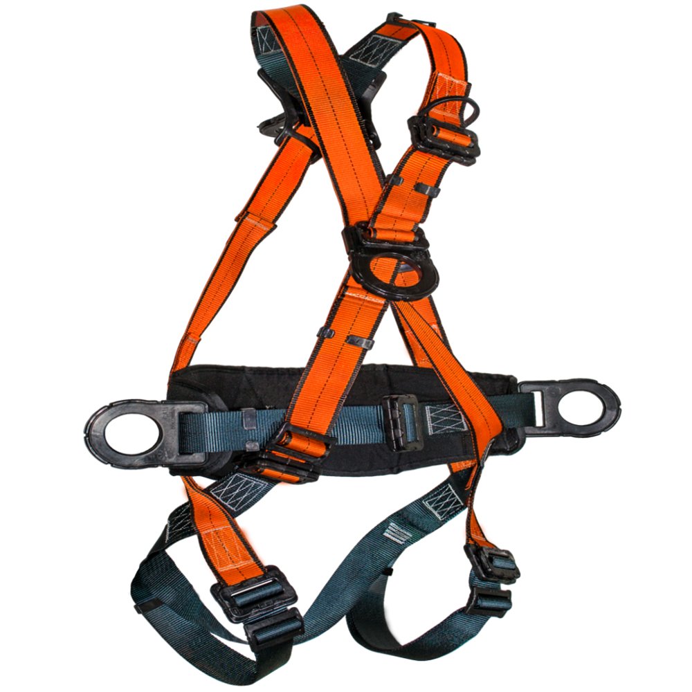 Arnés Dieléctrico Tipo X de 4 argollas con faja lumbar, dos argollas laterales, una dorsal y una frontal con recubrimiento